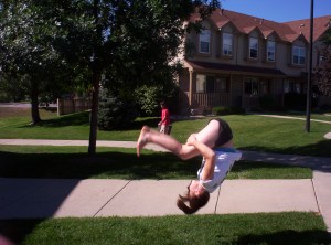 Allison back tuck in the front yard