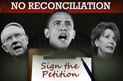 “In less than one week, more than 100,000 Americans have signed their names to a petition demanding that lawmakers resist using “reconciliation” to ram a government takeover of America’s health-care system through Congress – and those signatures will be delivered directly to lawmakers Tuesday.