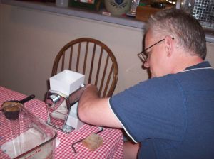 Paul grinds the grain
